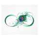 El símbolo del infinito con una pluma de pavo real brillante, verde y artística sobre un fondo blanco. Estilo tatuaje.