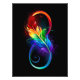 Símbolo de infinito dibujado artísticamente con una hermosa pluma arco iris sobre fondo blanco. Estilo tatuaje.