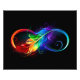 Símbolo de infinito dibujado artísticamente con una hermosa pluma arco iris sobre fondo blanco. Estilo tatuaje.
