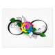 símbolo infinito con rosa arcoiris sobre fondo blanco.