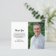 Tarjeta de agradecimiento de presupuesto moderno en blanco y negro con un diseño simple y minimalista con tu foto favorita del fallecido junto con tu mensaje personalizado a la izquierda. "Gracias" y el nombre del difunto están en un guión elegante.