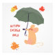Acogedoras vibraciones otoñales con un ratón lindo sosteniendo un paraguas, rodeado de hojas otoñales cayendo. Diseño estacional perfecto para los amantes del otoño, ambiente acogedor de otoño y arte inspirado en la naturaleza.