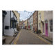 Immerse yourself in the historic charm of the British coastline with this high-resolution photograph of the main high street in Staithes, North Yorkshire. The image captures the iconic cobbled roadway as it winds through the heart of the village, lined with traditional colourful cottages, quaint shopfronts, and festive blue-and-white bunting overhead.