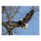 Un águila calva capturada en su aproximación de aterrizaje. Un majestuoso águila calva con una envergadura de entre 2 y 7 pies. Al descender hacia un desembarco, sus alas están extendidas, mostrando el impresionante envergadura de las plumas. Las plumas blancas de cabeza y cola se destacan contra el cuerpo marrón oscuro, creando un sorprendente contraste.