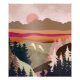 Un paisaje abstracto con colores y texturas únicos que muestran un paisaje natural con un sol naciente y dos gansos en tonos naranja, beige, marrón y rosa.