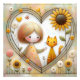 This sweet design features a smiling girl beside an orange cat inside a heart-shaped frame, surrounded by flowers and a large sunflower. The soft pastel palette, hand-painted texture, and whimsical storybook style create a warm, cheerful look that feels playful and comforting.