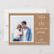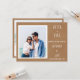 Foto moderna de la pareja Boda Guardar la tarjeta de invitación de fecha tarjeta plana con información del sitio web, fuente blanca, tan texturizado diseño de impresión de cartón.