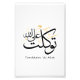 This design presents the Arabic phrase “Tawakkaltu ‘ala Allah” rendered in classic Thuluth calligraphy with a refined minimalist approach.