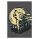 This striking artwork features a textured howling wolf illustrated in gray and teal shades, set against a stylized cream moon with bold teal stripes. Below the moon lies a detailed forest silhouette that completes the wild, atmospheric scene. With its limited vintage-inspired palette and dramatic composition, this design is perfect for nature lovers, wolf fans, and anyone drawn to bold wilderness aesthetics.
