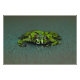 Un sapo solitario de barriga rodada (Bombina orientalis) descansa en una pequeña piscina de agua. El verde claro contrasta con las salpicaduras negras oscuras de todo el cuerpo, mientras que el agua estancada es un reflejo perfecto