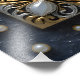 Esta obra de arte en 3D imita la artesanía de un metalero de orfebre especializado en oro, plata y otros metales preciosos. Presenta un retrato de tigre 3D en tonos oro y plata metálicos, ambientado con un fondo de hojas de estilo barroco muy detalladas. La obra se imprime para capturar las texturas ricas de los efectos visuales de los elementos metálicos.
