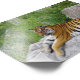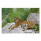 Foto de retrato de un tigre siberiano soltándose sobre una roca. Los tigres siberianos están en peligro.
