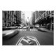 Impresionante fotografía de calle en blanco y negro que capta el tráfico de Manhattan a baja velocidad de obturación, ilustrando el dinámico flujo de la vida urbana contra la calma de los edificios de la ciudad en alza