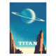 Titán y El planeta anillado Saturno Estilo Vintage Arte Espacial.