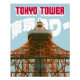 A modern minimalist poster featuring the iconic Tokyo Tower in the foreground against a soft blue background. The bold title ‘TOKYO TOWER’ uses the colors of the Japanese flag, while Japanese typography flows subtly behind the tower, adding depth and cultural character. Clean, balanced, and contemporary, this wall art is perfect for modern interiors, travel lovers, and fans of city-inspired design.