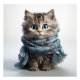 Echa un vistazo a estos hermosos ojos y te sentirás. Este gato tabby de diseño de IA está usando una distinguida bufanda azul.