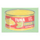 Un ilustracion de estilo publicitario retro de una lata de atún. Esta lata de pescado tiene una etiqueta que dice que el atún es alto en Omega 3 y se pesca de forma sostenible. Mente para cualquiera a quien le guste la comida en lata/en lata
