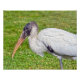 "Tormenta de madera juvenil" por Catherine Sherman. Una joven cigüeña de madera visita un parque de Florida, donde los pescadores están probando su suerte. La cigüeña de madera (Mycteria americana) es un gran ave americana en la familia cigüeña Ciconiidae. Anteriormente se llamaba "ibis de madera", aunque no es un ibis. Se encuentra en hábitats subtropicales y tropicales de las Américas, incluido el Caribe. El plumaje es en su mayoría blanco, excepto la cola y algunas plumas de ala, que son negras con un lustre verdoso-violáceo. El menor difiere del adulto, pues el primero tiene una cabeza de plumas y una cuenta amarilla, en comparación con la cuenta de adulto negro. Los sexos son similares.