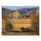 La luz dorada baña a un granjero con un tractor rojo mientras trabaja en un campo a finales del otoño.