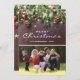Celebra la temporada festiva con estas tarjetas de Navidad rústicas que presentan una foto familiar para ser reemplazada con la tuya, un fondo de madera oscura, ramas de árbol de Navidad festivas, decoraciones de árbol rojas y doradas, luces centelleantes, tu nombre y el año.