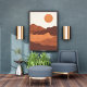 Esta pacífica ilustración captura la belleza de una puesta de sol sobre una cordillera, representada en suaves colores pastel.