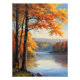 Captura la belleza del otoño con esta serena pintura de un ribereño rodeado de árboles coloridos. La manera perfecta de traer un toque de brillo a la naturaleza en el interior.