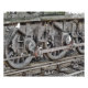 Diseño artístico de las ruedas de un tren de vapor.