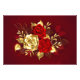 La composición de dos rosas rojas pintadas artistalmente y un rosa dorado, decorado con oro, hojas de joyas sobre fondo texturado.