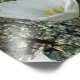 Los tulipanes son una planta perenne del género Tulipa, y pertenecen a la familia Liliaceae. El tulipán florece año tras año, con flores de primavera en tu paisaje de jardín. Tres flores blancas de tulipanes se elevan sobre tallos verdes largos, mientras que los pétalos blancos dominan el primer plano. Un liquen verde azulado se aferra a la corteza de un pino. El árbol proyecta una sombra sobre el césped. Las hojas de tulipán variadas están repartidas en un verde pastel o verde claro.