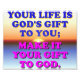 TU VIDA ES EL REGALO DE DIOS PARA TÚ. HACERLO TU REGALO PARA DIOS. Esta colorida imagen es una fuente de gran inspiración y aliento para todos los cristianos creyentes de Dios. Simplemente dice que así como Dios nos ha dado el don de la vida, deberíamos vivir nuestras vidas por él. Porque después de todo, ¡Él es el único que puede crear vida! ¡Pida hoy su copia del poster con una hermosa imagen!