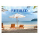 Retirado, tumbonas con paraguas en la hermosa playa, o tu mensaje.