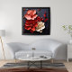 Esta impresionante obra de arte cuenta con un ramo vibrante de flores rojas y blancas, que incluye peonías, rosas, amapolas y dahlias, con un fondo negro dramático. Los colores llamativos y los detalles realistas crean un punto focal cautivador que seguro mejorará cualquier espacio. Este hermoso diseño floral está disponible en una variedad de productos, lo que lo convierte en la manera perfecta de añadir un toque de elegancia a su casa o oficina.