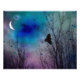 El cuervo vuela hacia el bosque mientras una hermosa luna creciente resplandece en esta colorida fotografía celeste.