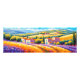 "Vallée Florale" Amplio paisaje provenzal. Esta acuarela estilizada captura la serena belleza de la Provenza, con colinas ondulantes y campos de lavanda y mimosa. Las casas de piedra tradicionales se encuentran en el paisaje, mientras que las coloridas flores del prado le dan un ambiente tranquilo y relajado a esta pintoresca escena.