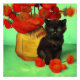 Imagen con un gatito negro al estilo de Van Gogh. Un bonito gatito se sienta al lado de un jarrón con flores rojas. La pared verde y el suelo crean un ambiente primaveral. ¡Un regalo fantástico para los amantes del gato y para los coleccionistas holandeses de arte!