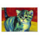Imagen con un gato en forma de tabby al estilo de Van Gogh. Este gatito dulce se posa adorablemente sobre un parqué de madera contra paredes rojas y una ventana. ¡Un regalo increíble para los amantes del gato y para los coleccionistas holandeses de arte!