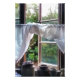 Un paso atrás a la época georgiana y victoriana con esta vista a través de la ventana de la cocina de la casa de campo. La cocina era pequeña, oscura y húmeda y la ventana se abrió para que el aire fresco llegara bien. Acuarela. Inglaterra Reino Unido.