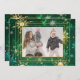 Copolos de nieve dorados en un hermoso fondo verde navideño con copos de nieve dorados. Tarjeta de saludo de temporada. Triple marco dorado falso elegante. Agregue sus fotos familiares favoritas para personalizar esta belleza. Tan simple, pero elegante.