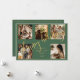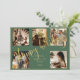 «Felices Fiestas» en hermosa letra dorada falsa sobre fondo verde. Reemplace las fotos con 5 de sus fotos favoritas. Festivo. Cambie los nombres y el año y qué hermosa tarjeta de Navidad. Elegante. Tan simple, pero con estilo.