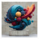 A cracked turquoise sphere erupts in thick, swirling waves of textured color, releasing a cascade of glossy orbs in electric teal, cobalt blue, fiery orange, deep red, mustard yellow, terracotta, lavender, and burgundy. Dramatic ribbons of flame-like red-orange-gold twist outward while metallic flecks catch light across every surface, creating intense motion, joyful chaos, and harmonious energy frozen in form. Perfect for modern living rooms, home offices, creative studios, entryways, minimalist galleries, or as striking gifts for art collectors, interior design lovers, or anyone drawn to bold, colorful abstracts, kinetic sculpture vibes, emotional expression, or high-impact contemporary decor.