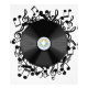Viejo disco de vinilo y notas musicales gráfico personalizado.