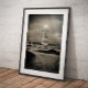 Faro viejo en una noche de tormenta con luz encendida. Faro de Cabo Espichel. siglo XVIII. Sesimbra (Portugal)