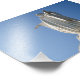 Lienzo con una foto de una estatua virgen de María en blanco, sobre un fondo azul del cielo, con hermosa luz.