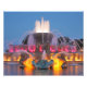 Una colorida vista nocturna de la Fuente de Buckingham, un punto de referencia de Chicago.