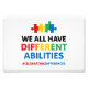 This powerful awareness design highlights inclusion and neurodiversity through bold typography and colorful puzzle elements. The phrase “We All Have Different Abilities” is presented with vibrant lettering to emphasize uniqueness, acceptance, and respect for all minds. A clean, modern layout delivers a positive and uplifting message that resonates with autism awareness, education, and inclusive communities. Designed to stand out while spreading empathy and understanding.