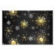 Fondo de Navidades negros con copos de nieve de oro y joyería negra. Copos dorados de nieve. Navidad.