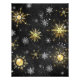 Fondo de Navidades negros con copos de nieve de oro y joyería negra. Copos dorados de nieve. Navidad.