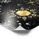 Fondo de Navidades negros con copos de nieve de oro y joyería negra. Copos dorados de nieve. Navidad.
