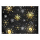 Fondo de Navidades negros con copos de nieve de oro y joyería negra. Copos dorados de nieve. Navidad.