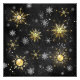 Fondo de Navidades negros con copos de nieve de oro y joyería negra. Copos dorados de nieve. Navidad.